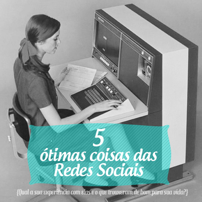 Logo quando começaram as redes sociais, elas foram como um refúgio pra mim. Eu era bem adolescente na época, e meio excluída na escola. Aí conheci pessoas maravilhosas, e algumas converso até hoje; Conversava sobre assuntos mais amplos, e isso me ajudou a abrir mais a cabeça, conhecer outras áreas, compartilhar experiências e foi aí que comecei a blogar. A melhor coisa que fiz até hoje! Então, ponto pras redes sociais 😀
