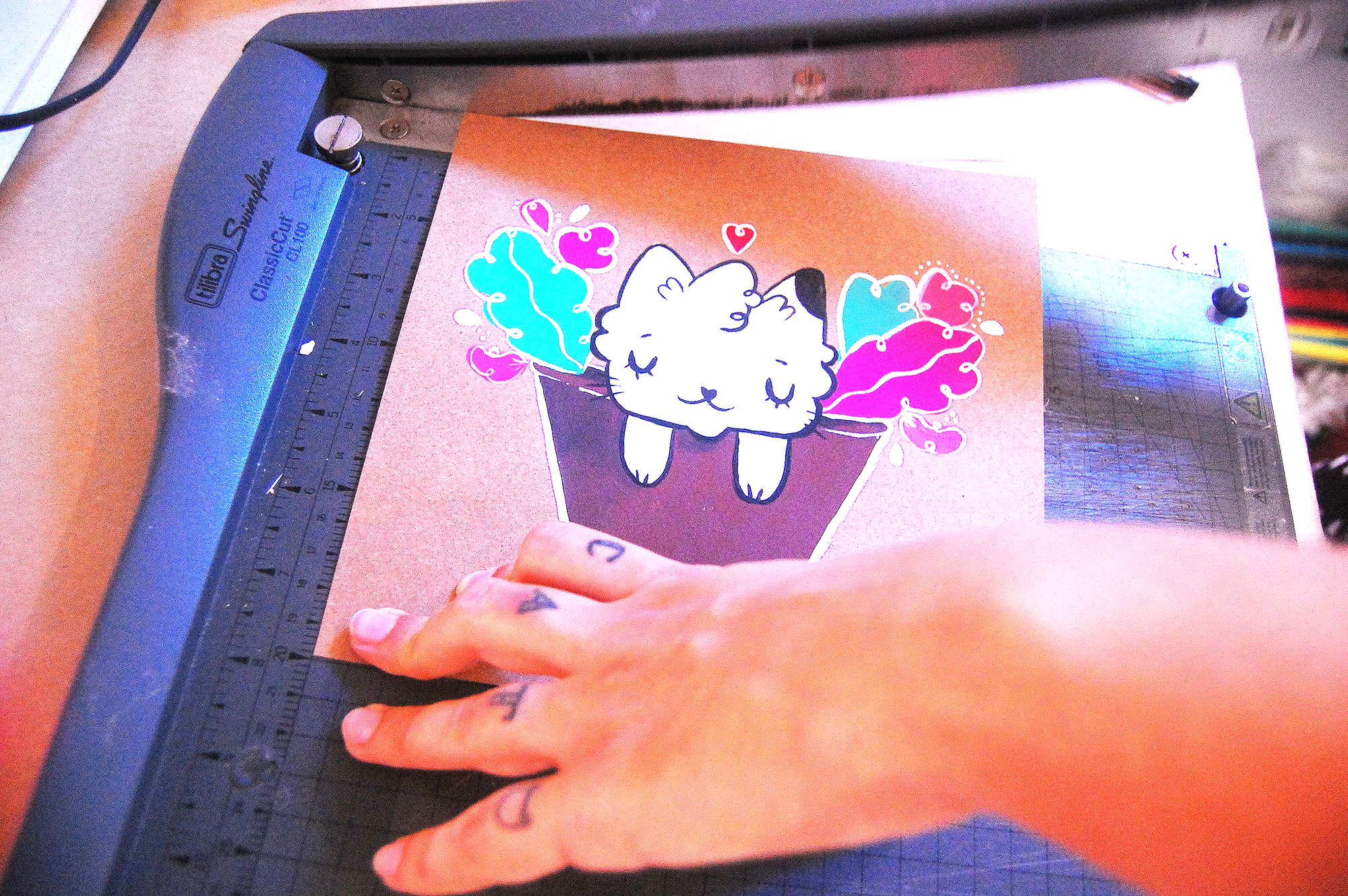 Todo cuidado é pouco quando se trata de ferramentas de corte, mas por mais desastrado que você seja, raramente você vai perder um dedo. No começo eu achava que guilhotina e estilete eram coisas que tinham vida própria (rs), mas sou uma pessoa CONSIDERAVELMENTE desengonçada e desastrada, além de MUITO míope. Já me cortei com estilete, o dedo tá aqui ainda e passa bem (foi burrada mesmo). Logo, não dominar ferramentas não é desculpa pra não começar, tá?