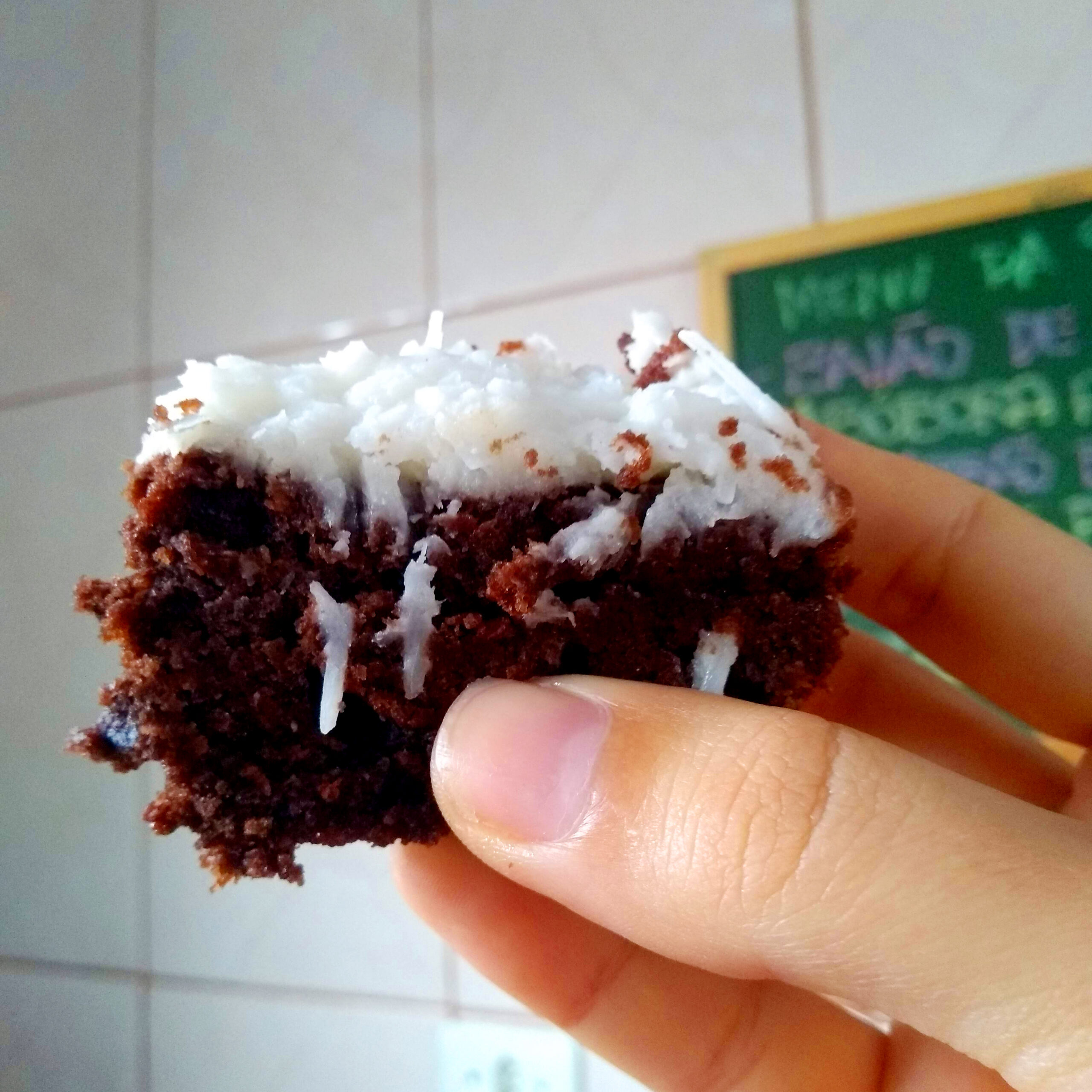 Bolo de chocolate vegano com cobertura de coco